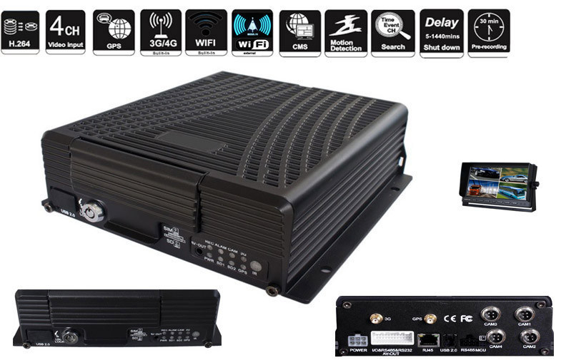 • 8 CH video & audio inputs; support over speed alarm, GPS loss alarm and out of Geo-fence alarm etc..Support Alarm button, Intercom,BUS IC reader. and can work 1 hour once connect UPS battery after power off.