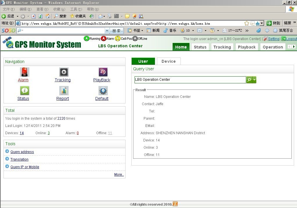 7) Lista do usuário e dos veículos (todo o usuário e os veículos podem ser monitorados sob os usuários estão listados);